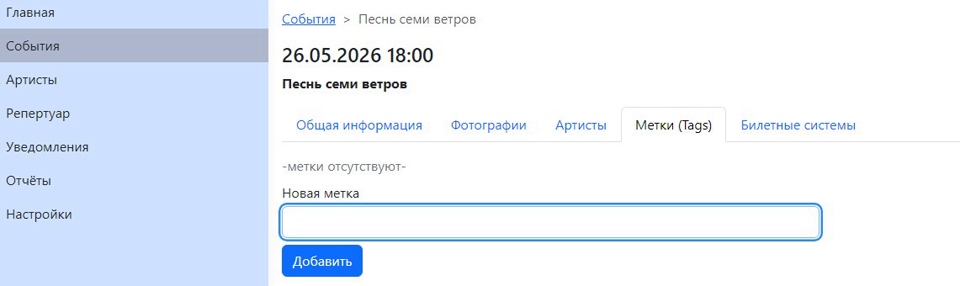 Данная вкладка доступна в событиях категорий отличных от событий из репертуара